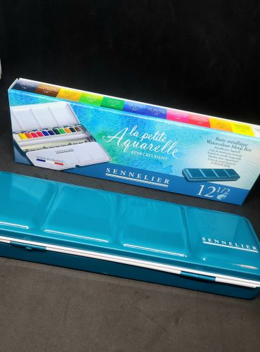 La petite Aquarelle de Sennelier dans une élégante boîte métallisée turquoise